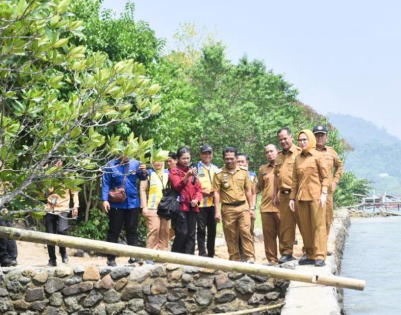 PESAWARAN(SB) – Bupati Pesawaran Hj. Nanda Indira B., S.E., M.M meninjau langsung hasil rehabilitasi tanggul pemecah ombak di Dusun Perantian, Desa Durian, Kecamatan Padang Cermin, Senin (22/9/2025). Proyek tersebut dibangun untuk menanggulangi abrasi pantai sekaligus mencegah hempasan air laut hingga ke badan jalan.
