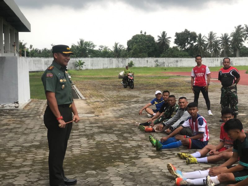 Saat memberikan arahan dihadiri Perwira staf Kodim 0421/LS serta sejumlah atlit yang tergabung di liga santri PSSI piala KASAD tahun 2022, untuk memberikan arahan serta dukungan moril agar para pemain mempunyai kematangan secara mental dan fisik untuk menghadapi ke ajang tingkat nasional.