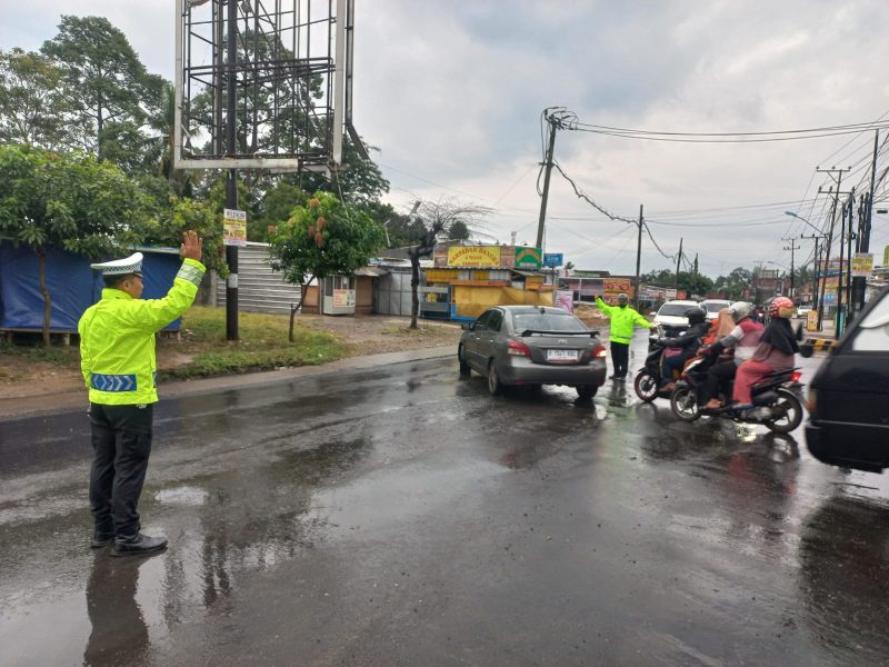 PESAWARAN(SB) – Wujud pengabdian tanpa kenal lelah kembali ditunjukkan personel Satuan Lalu Lintas (Sat Lantas) Polres Pesawaran. Pada Sabtu pagi (20/9/2025) pukul 06.30 WIB, meskipun wilayah Gedong Tataan diguyur hujan, jajaran Sat Lantas tetap melaksanakan pengaturan arus lalu lintas di Simpang Tugu Coklat, Jalan Lintas Barat (Jalinbar), Pesawaran.