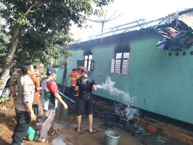 PESAWARAN(SB) — Suasana tenang di Dusun 01, Desa Kalirejo, Kecamatan Negeri Katon, Kabupaten Pesawaran mendadak gempar pada Sabtu (4/10/2025) siang, setelah sebuah rumah permanen milik warga bernama Riswanto (50) hangus terbakar. Peristiwa tersebut diduga kuat dipicu korsleting arus listrik di bagian kamar depan rumah.