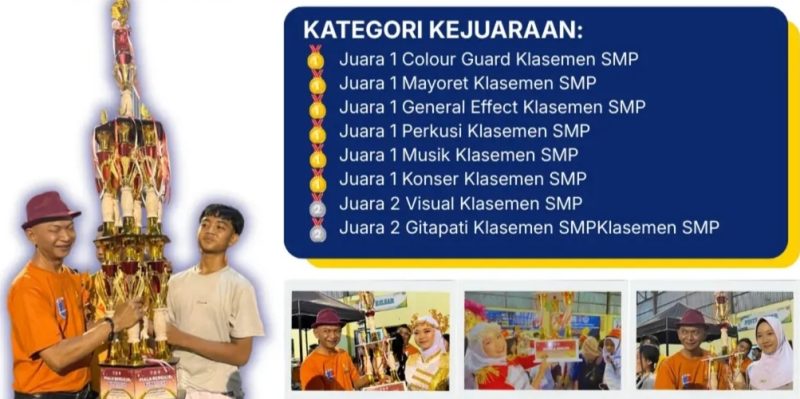 Adapun kategori kejuaraan yang berhasil diraih di antaranya Juara 1 Colour Guard, Juara 1 Mayoret, Juara 1 General Effect, Juara 1 Perkusi, Juara 1 Musik, Juara 1 Konser, serta Juara 2 Visual dan Juara 2 Gitapati pada klasemen SMP.