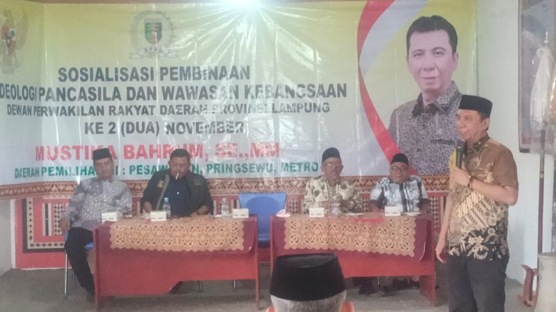PESAWARAN(SB) – Guna memperkuat fondasi ideologi bangsa dan meneguhkan komitmen persatuan, Dewan Perwakilan Rakyat Daerah (DPRD) Provinsi Lampung kembali menggelar Sosialisasi Pembinaan Ideologi Pancasila dan Wawasan Kebangsaan. Kegiatan yang berlangsung khidmat dan penuh antusiasme ini digelar di Desa Pasar Baru, Kecamatan Kedondong, Kabupaten Pesawaran, pada Sabtu (22/11/2025).