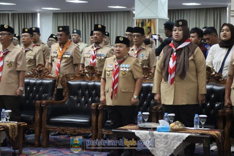 Pesisir Barat – Wakil Bupati Pesisir Barat (Pesibar) sekaligus Ketua Kwartir Cabang (Kwarcab) Gerakan Pramuka Pesibar, Irawan Topani, S.H., M.Kn., menghadiri pelantikan pengurus Majelis Pembimbing Daerah (Mabida) dan Mabida Harian, Pengurus Kwartir Daerah (Kwarda) Lampung dan Pengurus Lembaga Pemeriksa Keuangan (LPK), serta Pengurus Dewan Kerja Daerah (DKD) Lampung masa Bakti 2025-2030, di Balai Keratun Lantai 3 Komplek Pemprov Lampung, Senin (1/12/2025).