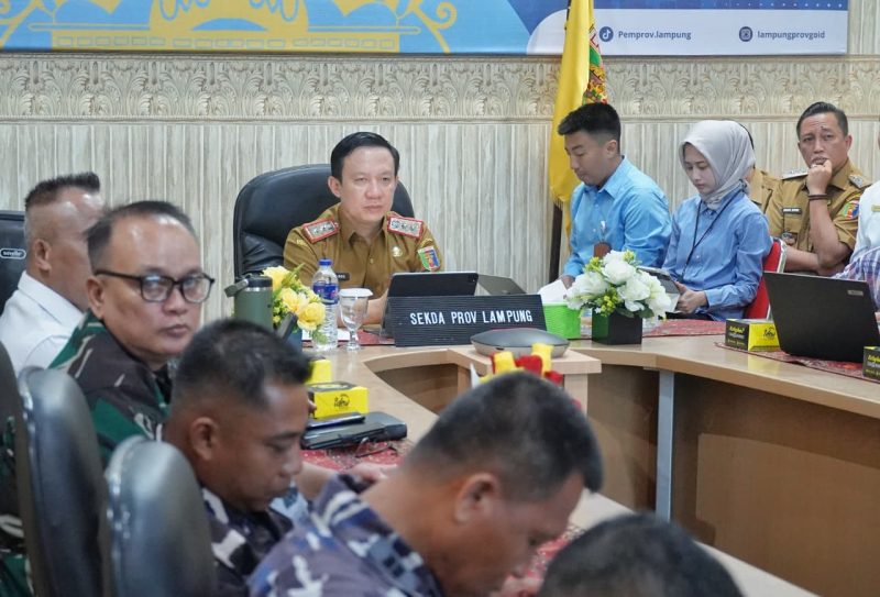 BANDARLAMPUNG – Sekdaprov Lampung, Marindo Kurniawan, mengikuti Rapat Koordinasi Pengendalian Inflasi Daerah secara daring, di Ruang Command Center Dinas Kominfotik Provinsi Lampung, Selasa (16/9/2025).