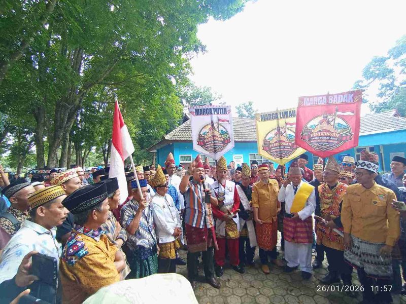 PESAWARAN(SB) – Masyarakat Adat Way Lima, didampingi sejumlah organisasi pendamping, menggelar demonstrasi pada Senin (26/01/2026) untuk menegaskan tuntutan pengembalian tanah ulayat seluas ratusan hektar yang masih dikuasai PTPN I Regional 7 Unit Way Lima. Aksi ini merupakan eskalisasi setelah puluhan tahun konflik yang tidak kunjung terselesaikan.