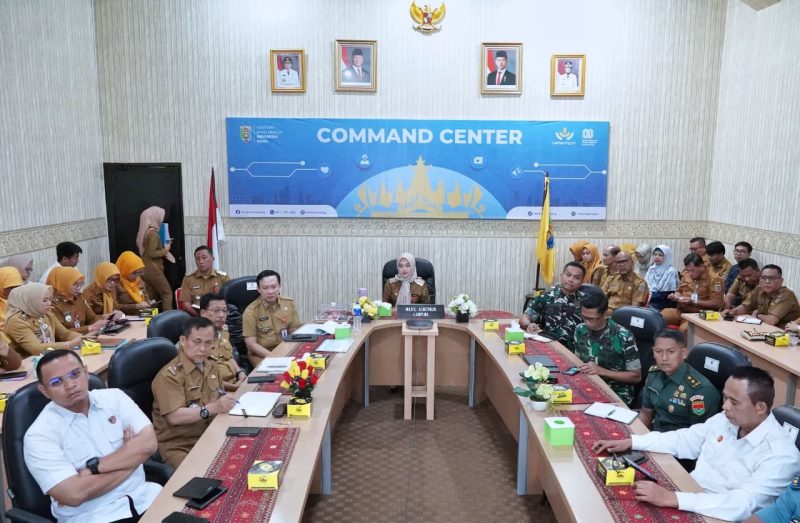 BANDARLAMPUNG – Wakil Gubernur Lampung, Jihan Nurlela mengikuti Rapat Koordinasi Pengendalian Inflasi Daerah secara daring, di Ruang Command Center Lt. II Dinas Kominfotik Provinsi Lampung, Senin (8/9/2025).