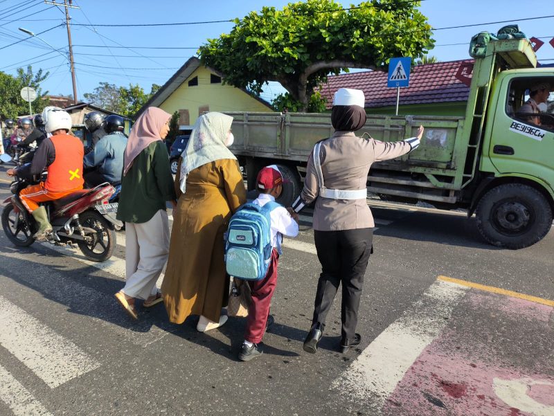 Kegiatan yang dimulai sejak pukul 06.30 WIB ini sengaja dilakukan di titik rawan macet dan padat aktivitas. Dengan sigap, Briptu Nabila dan Briptu Cahyo mengurai antrean kendaraan dan memastikan anak-anak bisa menyeberang dengan aman. Terlihat jelas senyum lega dari wajah para orang tua dan siswa yang merasa terbantu.