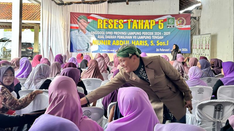 LAMPUNG TENGAH – Anggota Komisi III DPRD Provinsi Lampung dari Fraksi Partai Kebangkitan Bangsa (PKB) Daerah Pemilihan (Dapil) VII Lampung Tengah, Munir Abdul Haris, S.Sos.I., melaksanakan kegiatan reses maraton pada 26 Februari hingga 5 Maret 2026 di sejumlah desa di Kabupaten Lampung Tengah.