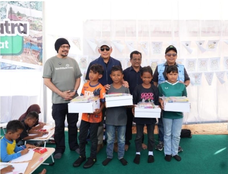 Dalam kunjungan tersebut, PTPN IV PalmComeresmikan Sekolah Alam Darurat bagi anak-anakpenyintas banjir serta menyalurkan bantuan logistik bagiibu dan anak. Langkah ini menegaskan pendekatanpemulihan yang tidak hanya berfokus pada pembangunan fisik, tetapi juga menyentuh aspek sosialdan psikologis masyarakat, khususnya anak-anak.