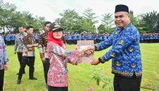 PESAWARAN(SB) – Bupati Pesawaran Dendi Ramadhona didampingi Ketua TP PKK Kabupaten Pesawaran Nanada Indira Dendi menyerahkan bantuan kepada masyarakat di Kecamatan Tegineneng dan Negeri Katon.