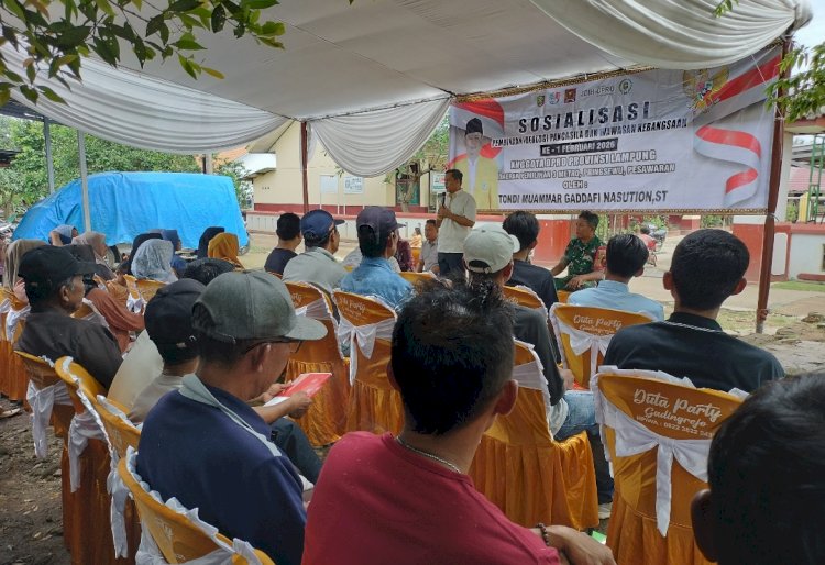 PRINGSEWU – Anggota DPRD Provinsi Lampung, Tondi Muammar Gaddafi Nasution, memanfaatkan momentum Sosialisasi Pembinaan Ideologi Pancasila dan Wawasan Kebangsaan sebagai sarana membangun kedekatan emosional dengan masyarakat Pekon Gadingrejo, Kecamatan Gadingrejo, Kabupaten Pringsewu, Minggu (8/2/2026).