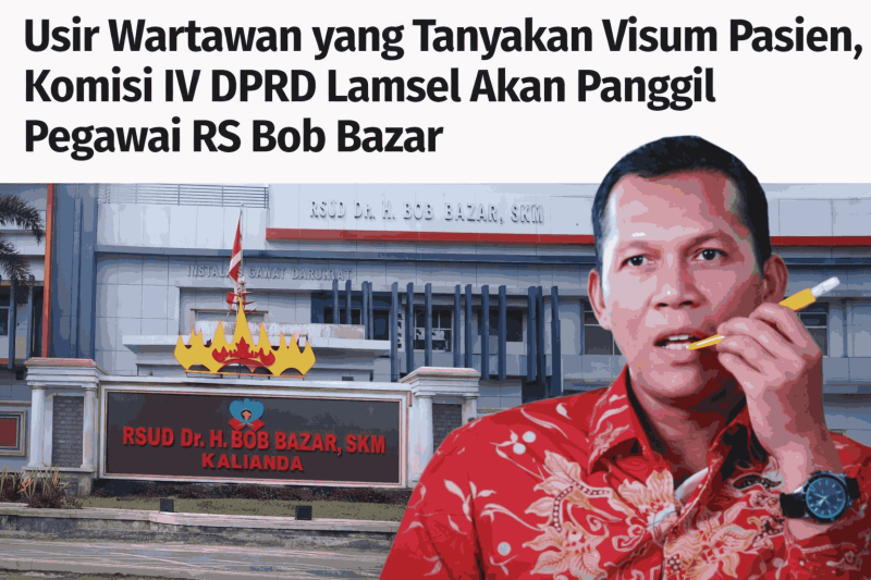 Lampung Selatan (SB) – Insiden pengusiran terhadap seorang wartawan yang tengah bertugas di Rumah Sakit (RS) Bob Bazar, Kalianda, Kabupaten Lampung Selatan, menyedot perhatian publik. Kini, Komisi IV DPRD Kabupaten Lampung Selatan turun tangan dan berencana memanggil pegawai rumah sakit yang terlibat.
